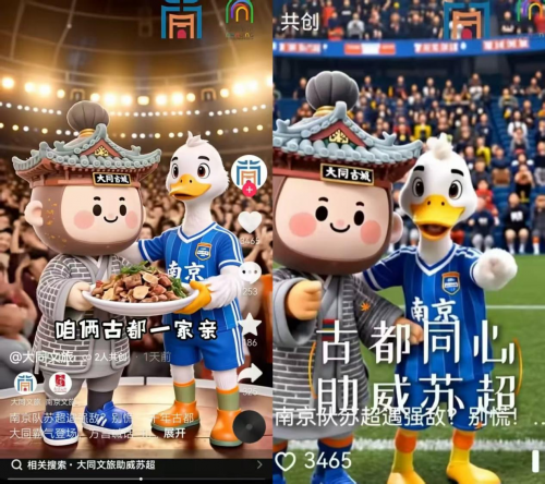 作为本次推介会的重要线上延伸,大同市文旅局与南京市文旅局联合创意出品了助力苏超短视频《古都同心,助威苏超》。视频以AI生成的卡通人偶形象,展现南京AI形象与大同古城AI形象联袂登场、美食互动、并肩助威的生动场景。片中融入方言对话与文旅元素,以轻松幽默的方式传递“古都一家亲”的深厚情谊,引发网友广泛转发与情感共鸣,成功实现“文旅+体育”的跨界破圈传播。