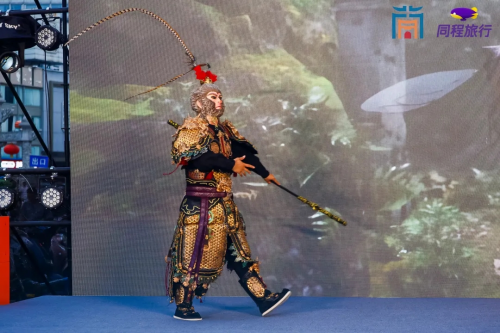 推介环节别出心裁地引入“悟空”角色,通过《跟着悟空游大同》的互动表演为引,大同文旅推介官为媒,通过精美的图文和讲解,带领观众穿越千年,领略云冈石窟、华严寺、北岳恒山、悬空寺等文化地标的独特风采,巧妙融合神话元素与文旅资源,令人耳目一新。随后,恒山景区推介官穆雁飞带来北岳恒山与悬空寺的深度讲解,结合其壮美的自然风光与深厚的文化底蕴,进一步强化了大同作为文化旅游目的地的独特吸引力。