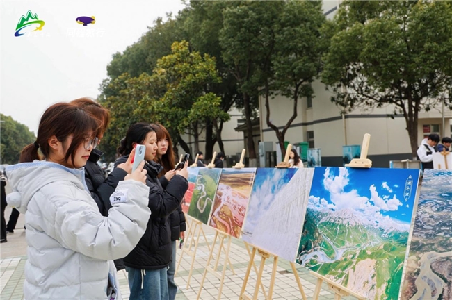 现场人气依旧火热,青海好物市集集结了品类丰富的青海特色物产与非遗手工艺品,师生们纷纷驻足品鉴观赏,以拍照、拍摄短视频的方式定格现场体验。摄影展区,一幅幅影像作品宛若一扇通往青海的秘境之窗,带领师生沉浸式领略可可西里的广袤原野,邂逅草原上悠然漫步的羊群,穿行于水系交织的黄河源头。学子们驻足观赏、认真记录,对青海精品旅游线路萌生了浓厚向往。拍照打卡区精准契合当代青年的旅游打卡偏好,以雪山映花海的唯美景致为主视觉,萌趣十足的雪豹、牦牛等地域特色元素,吸引师生们频频驻足。